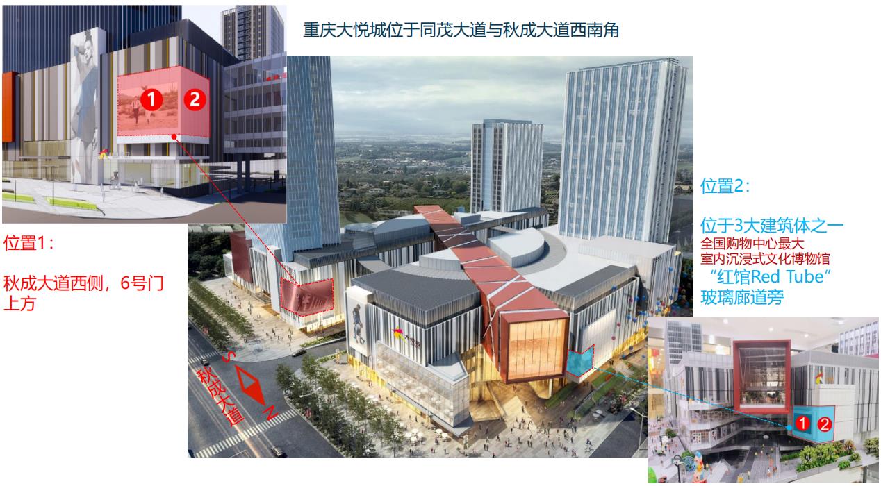 屏幕位置2:位于3大建筑體之一全國購物中心最大室內沉浸式文化博物館“紅館Red Tube”玻璃廊道旁