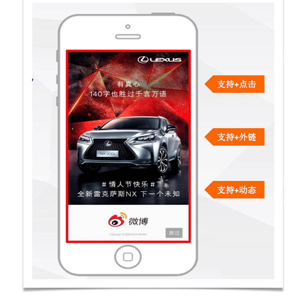 4、微博開屏廣告可以通過點擊屏幕,直接進(jìn)入互動頁面,或者是進(jìn)入你需要的網(wǎng)站頁,一步到位,保證客戶的轉(zhuǎn)化率達(dá)到最高。