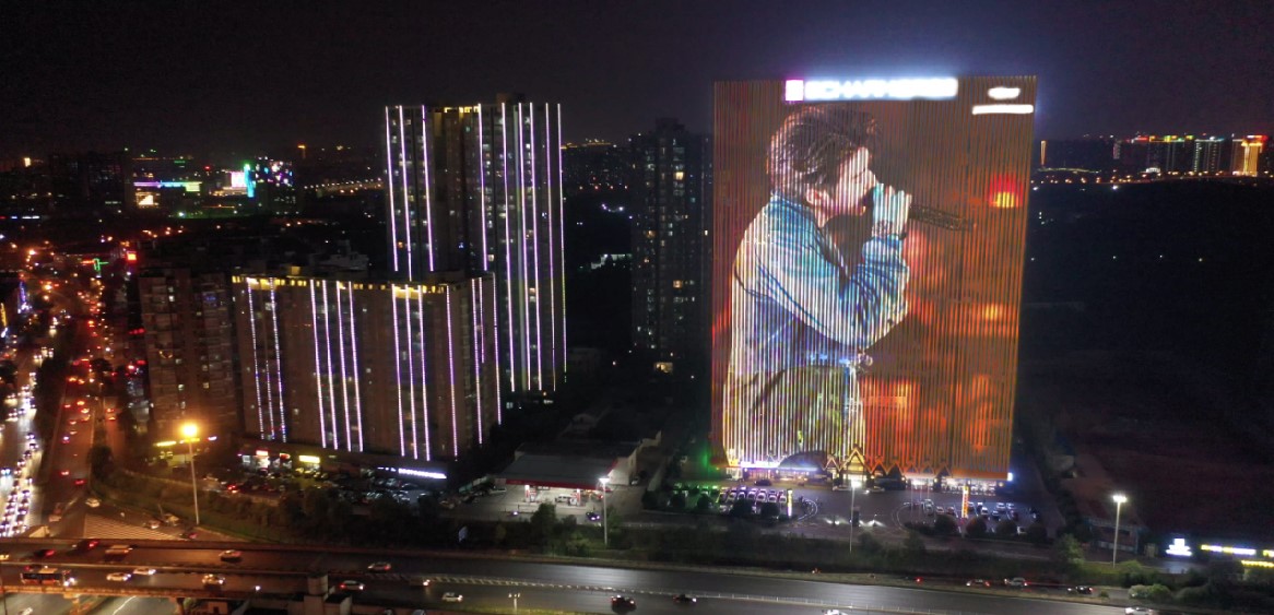 長(zhǎng)沙開(kāi)福萬(wàn)達(dá)樓體燈光秀廣告