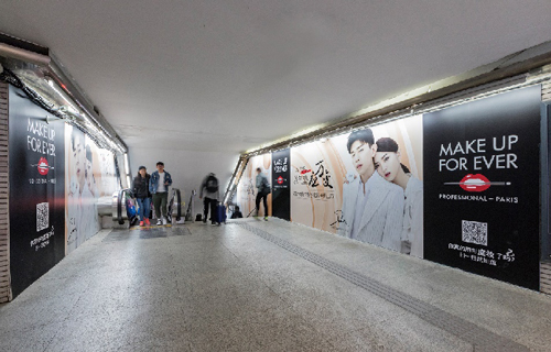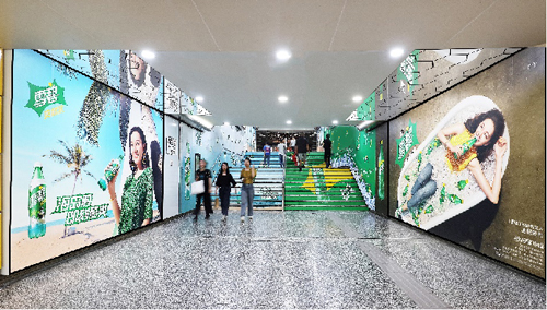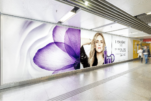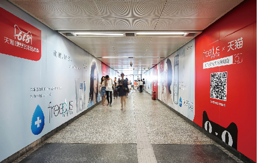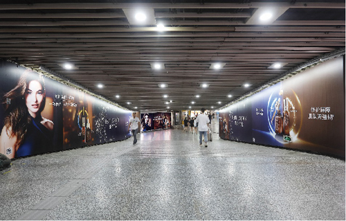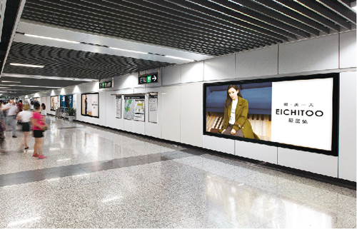 | 創(chuàng)意媒體-南京地鐵新街口站8號品牌通道廣告 線路:1、2號線 組合形式:73.34㎡ 墻貼 媒體費(fèi)(元/52周):600,000 制作方式:UV寫真燈布 制作費(fèi)(元/次):22,002 |