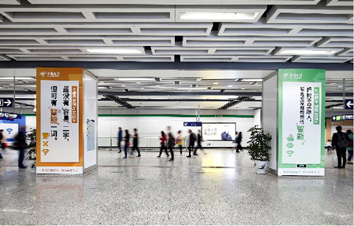 | 創(chuàng)意媒體-南京地鐵仙林中心站社區(qū)站廣告 線路:2號線 組合形式 :墻貼2面+柱貼19面 媒體費(fèi)(元/4周):200,000 制作方式:寫真噴繪 制作費(fèi)(元/次):35,631 |