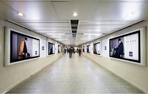 | 電子媒體-南京地鐵大行宮站動感長廊廣告 組合形式:A(近2號出入口):3組(6塊)雙聯(lián)65寸高清液晶顯示屏 +58.61㎡頂天立地墻貼+12封燈箱20套裝 B(近3號出入口):3組(6塊)雙聯(lián)65寸高清液晶顯示屏 +68.8㎡頂天立地墻貼+12封燈箱20套裝 媒體費(fèi)(元/52周):400,000 制作方式:UV寫真燈片+寫真噴繪+電子動畫 制作費(fèi)(元/次):39,083(墻貼+燈片)、42,140(墻貼+燈片) |