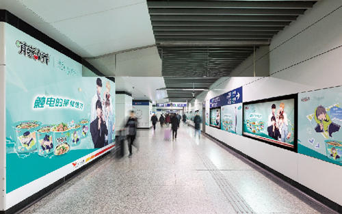 | 創(chuàng)意媒體-南京地鐵集慶門大街站品牌長廊廣告 線路:2號線 組合形式:7塊12封燈箱+約38.14㎡墻貼 媒體費(fèi)(元/52周):450,000 制作方式:UV寫真燈片+寫真噴繪 制作費(fèi)(元/次):18,440 |