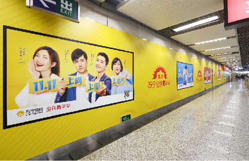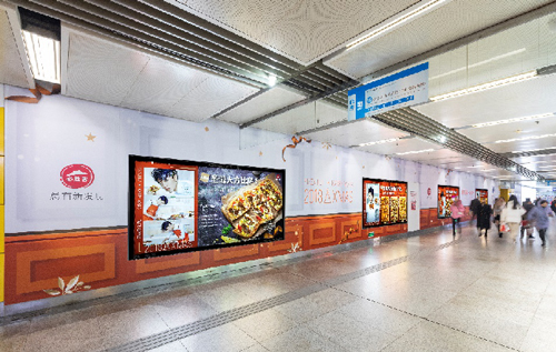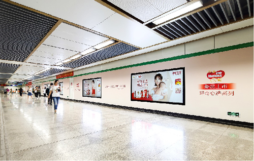 | 創(chuàng)意媒體-南京地鐵大行宮站2、3號線換乘品牌通道廣告 線路:2、3號線 組合形式:3面超級墻貼(43㎡梯側(cè)貼+左側(cè)42.5㎡墻貼+右側(cè)44.2㎡墻貼)? 媒體費(fèi)(元/52周):900,000 制作方式:寫真噴繪 制作費(fèi)(元/次):38,910 |