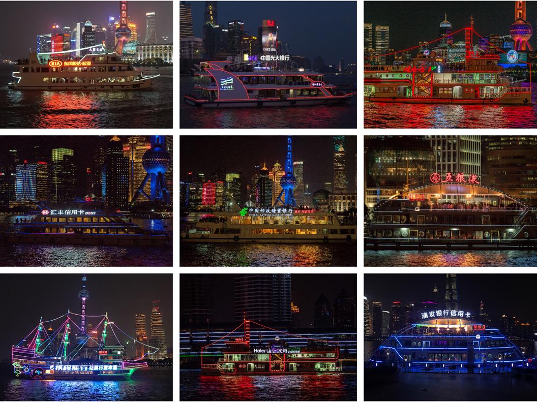 可欣賞到外灘上一幢幢風格迥異充滿濃郁異國色彩的萬國建筑,和與之遙相輝映的浦東陸家嘴現(xiàn)代建筑群,景色琳瑯滿目,相映成輝,令人目不暇接。