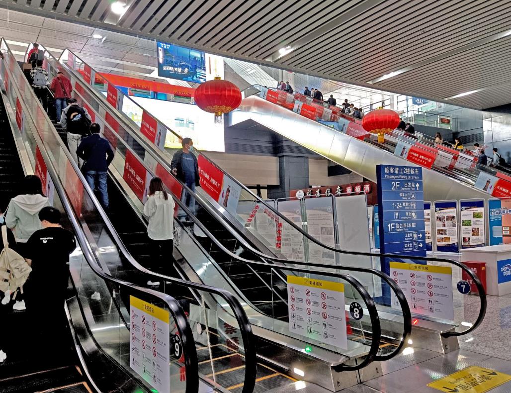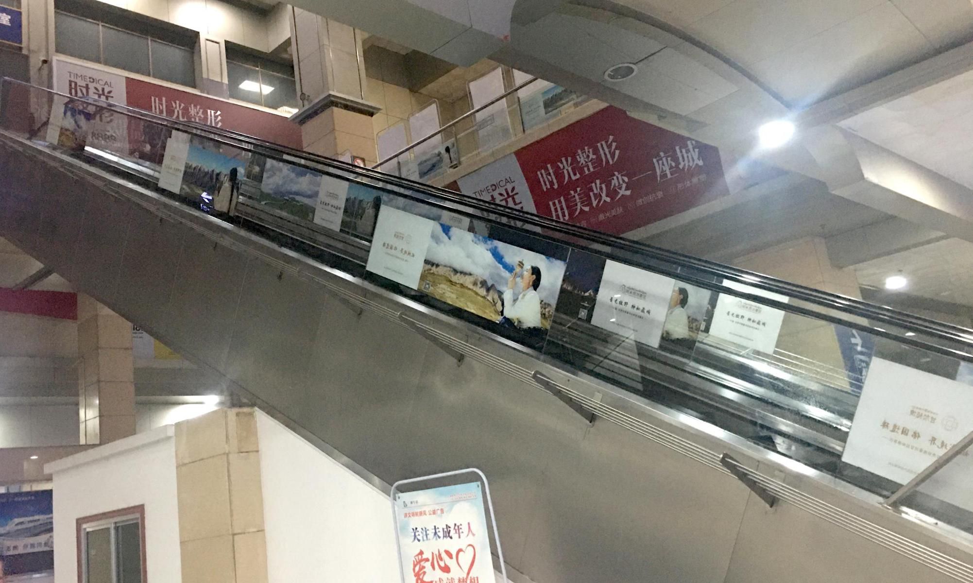 蘭州西客站候車室通往商業(yè)夾層扶梯廣告