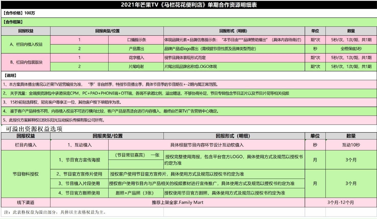 2021年芒果TV《馬欄花花便利店》單期合作資源明細表