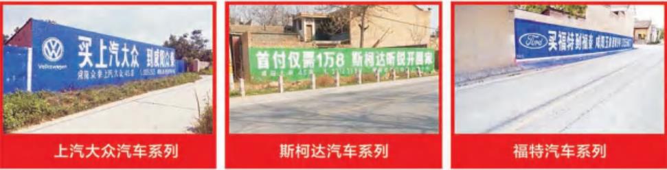3、更貼近銷售終端。墻體廣告是拓展農(nóng)村市場的最有力的武器,墻體廣告到達的地方,就有該產(chǎn)品在該區(qū)域熱銷的場面,可以是田間地頭,可以是農(nóng)家小院,也可以是規(guī)范的門市,墻體廣告是最貼近消費終端的廣告形式。