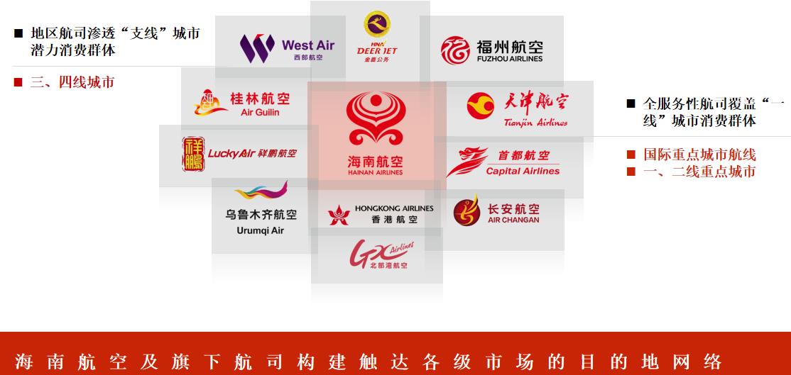 海航集團旗下參控股航空公司16家,參與管理機場13家,機隊規模近900架;開通國內外航線約2600條,通航城市240余個,年旅客運輸量逾1.44億人次。