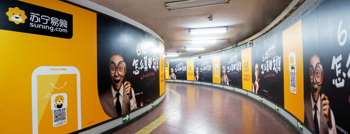 媒體優勢與運用: 復興門站是北京地鐵1號線與2號線的換乘站,客流量極大。復興門換乘通道內的大型墻貼面積大,視覺沖擊力強,撲面而來的視覺盛宴,完全吸引乘客目光。