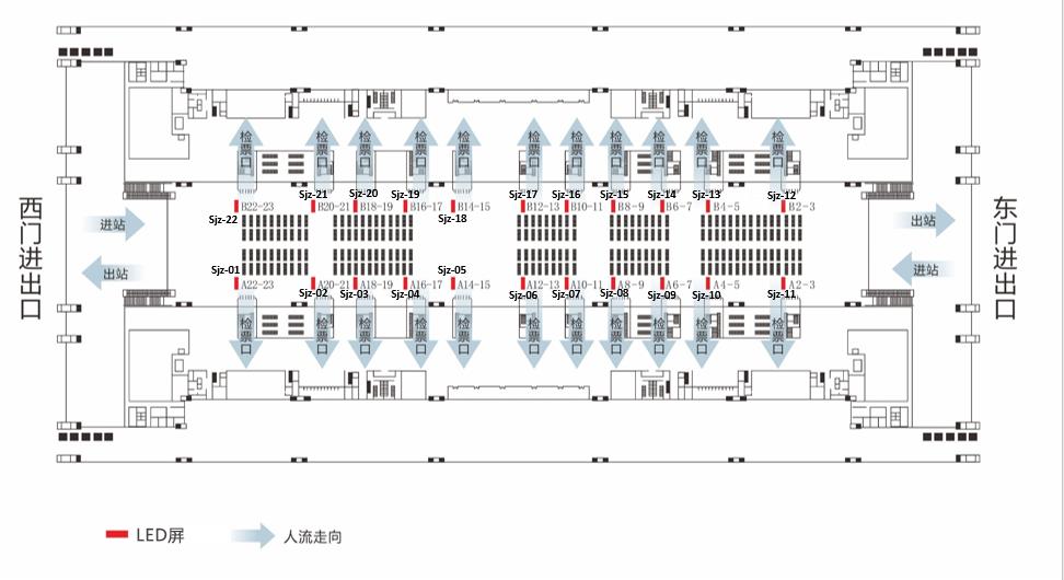 分      布:  高鐵站內候車廳、檢票口、安檢口、進出口、售票廳、扶梯口及站臺等重要關口