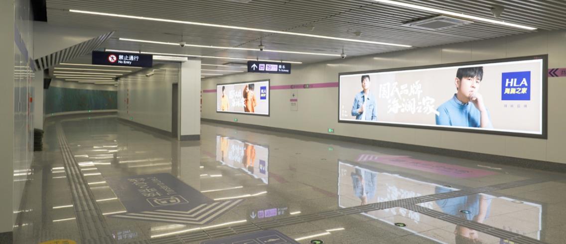 位于通道入口 ,正對地鐵站廳,雙側超大燈箱+墻貼直面乘客, 利于產生直觀品牌印象,提升品牌認知度