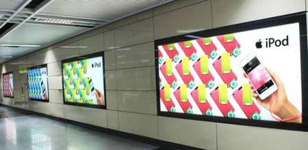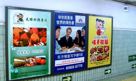 位于地鐵通道中或地鐵出口的燈箱媒體,經(jīng)常一排2個(gè)或3個(gè)燈箱