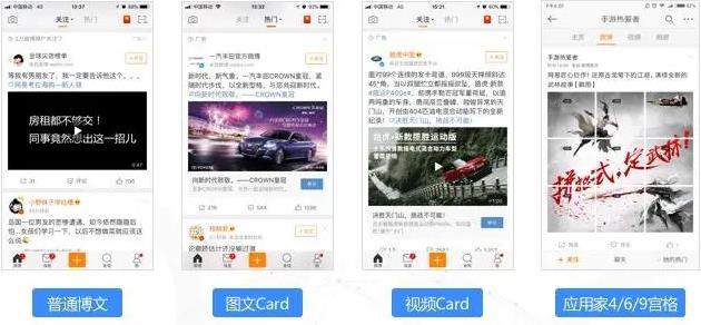 (3)微博信息流廣告??梢岳枚喾N短視頻方式,展現樣式原生,豎屏全新視覺體驗,賬號關聯強聚粉,可以分享、傳播等多種方式靈活并用,同時支持多種廣告樣式和效果優化方式。